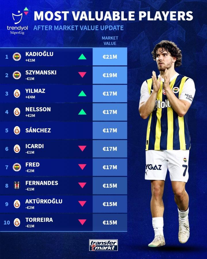 土超球员身价榜:费内巴切后卫卡迪奥卢2100万欧居首