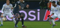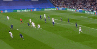 在巴黎的逼抢体系中,两名移动能力很强的中卫推动阵线前移,中前卫会配合边路封锁两翼,将皮球向姆巴佩区域驱赶,后者负责启动切断对手的传球线路,或追逐后卫的回传球。从实战效果上来看,皇马只有在大量使用年轻球员的情况下才能打出不错的高位逼抢,“新老结合”的阵容在压迫方面效果一般。