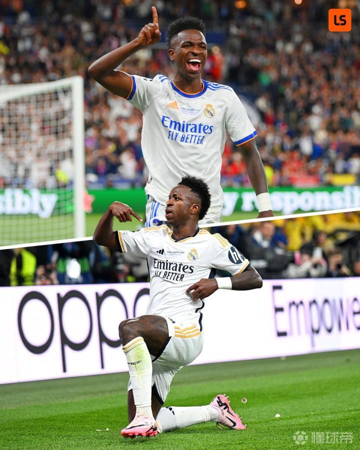 2023-24赛季欧冠决赛,皇家马德里对阵多特蒙德,下半场维尼修斯破门为皇马扩大比分,成为首位在两届欧冠决赛进球的巴西球员。