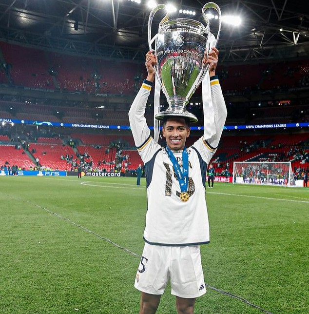 赛后第二天(当地时间),贝林厄姆再次在社交媒体上晒出了自己的捧杯照片,并配文:“皇马球迷们早上好啊,晚点见!”
