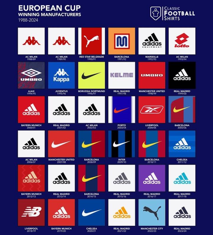 赞助品牌旗下球队欧冠夺冠次数排名:阿迪15次领跑佩德罗巴 @懂球帝2024-06-03 00:34北京时间6月2日,皇家马德里在欧冠决赛中2-0击败多特蒙德成功夺冠,这是皇马队史的第15个欧冠冠军,也是皇马身穿阿迪达斯球衣拿到的第8个欧冠冠军。至此,阿迪达斯赞助的球队已经拿到15座欧冠冠军,这一数字是所有赞助品牌中最多的。赞助品牌旗下球队欧冠夺冠次数排名阿迪达斯 15耐克 9卡帕 3彪马 2茵宝 2Meyba 1锐步 1卡尔美 1新百伦 1Lotto 1展开更多