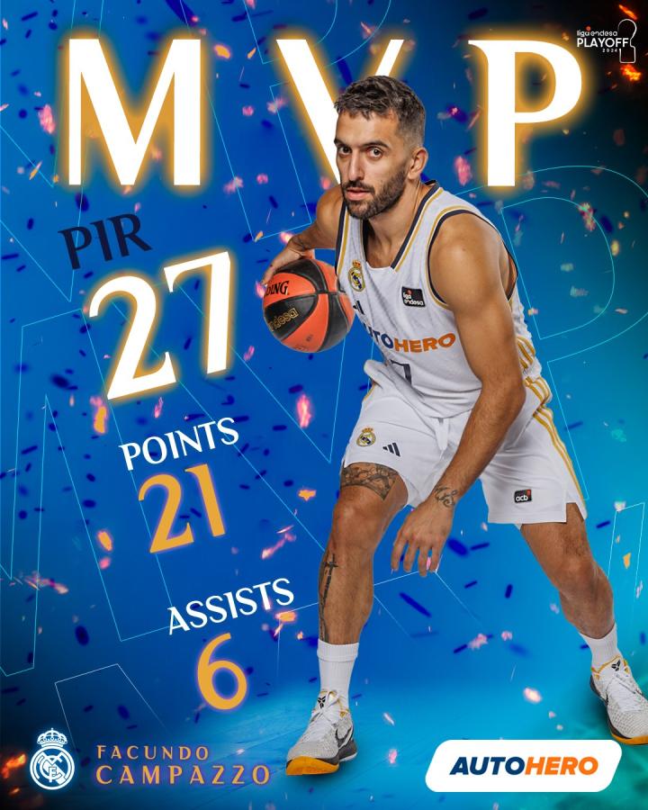 本场比赛中,皇马后卫坎帕佐砍下21分6助攻,他也凭借这个系列赛优异的表现荣膺半决赛MVP。另外,塔瓦雷斯拿到13分5板,穆萨拿到14分4板7助攻。