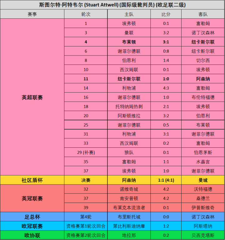 (图)23/24赛季阿特韦尔各项赛事执法场次明细
