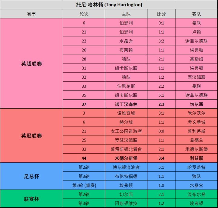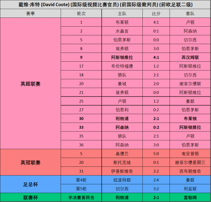 (图)23/24赛季安迪·马德利各项赛事执法场次明细