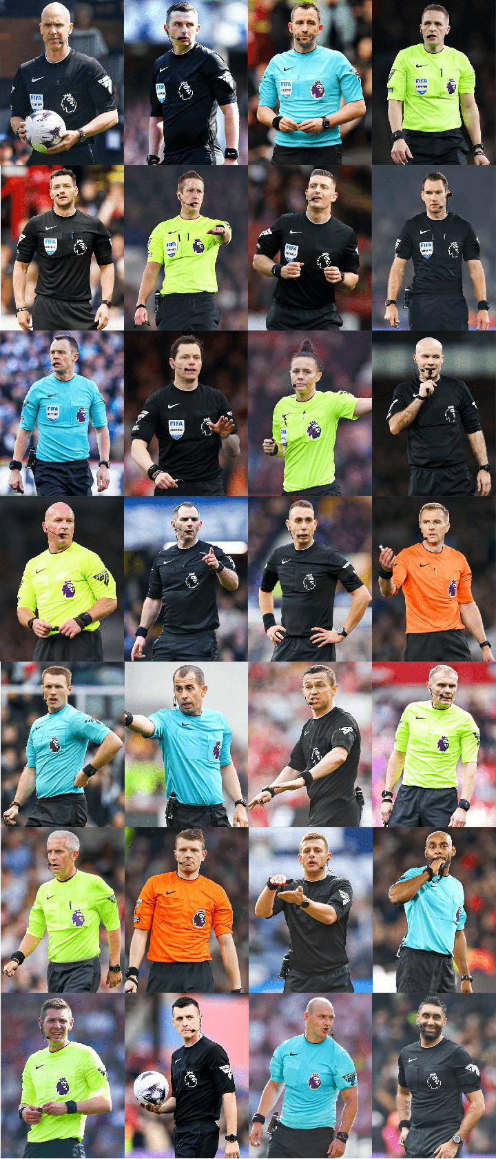 本赛季,共有28人获得了执哨英超联赛的机会,是近年来担任主裁人数最多的一个赛季,其中包括20名英超裁判员、6名英冠裁判员以及2名英甲/英乙裁判员。