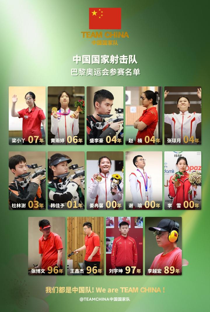 中国射击队巴黎奥运名单:00后为主,最小的梁小丫生于2007年