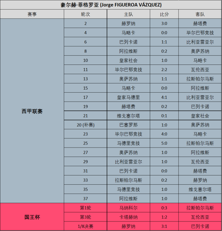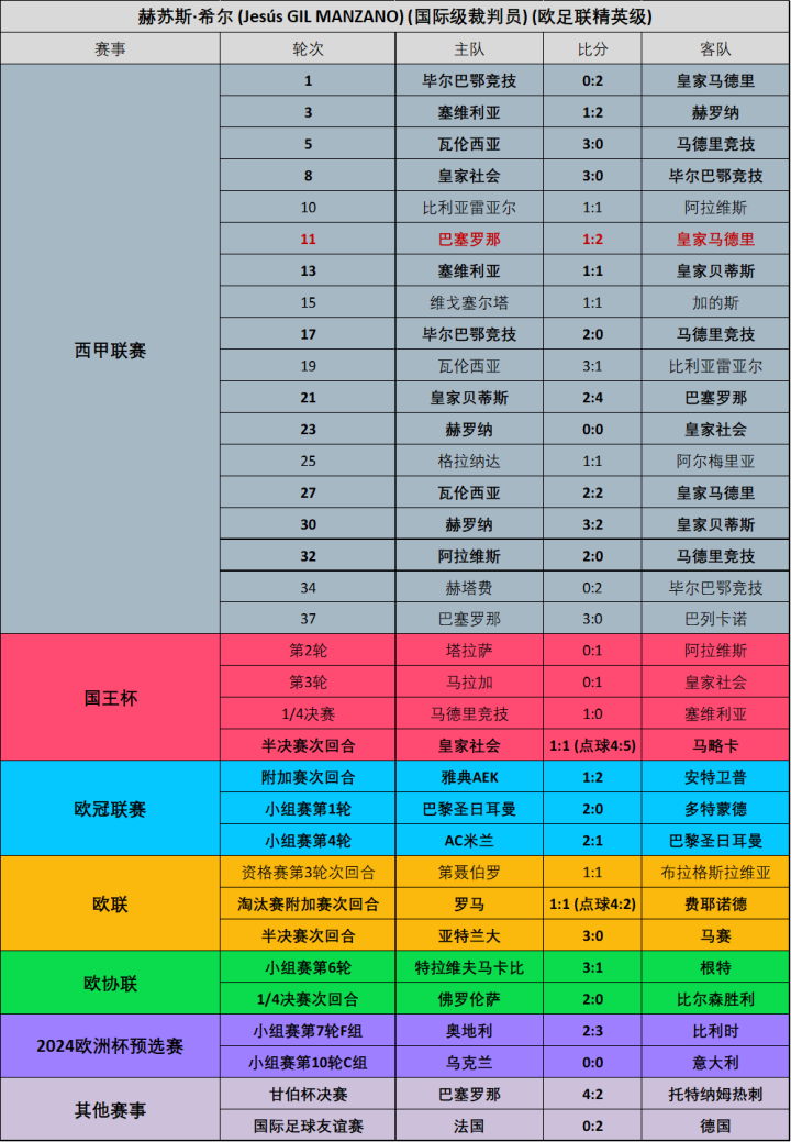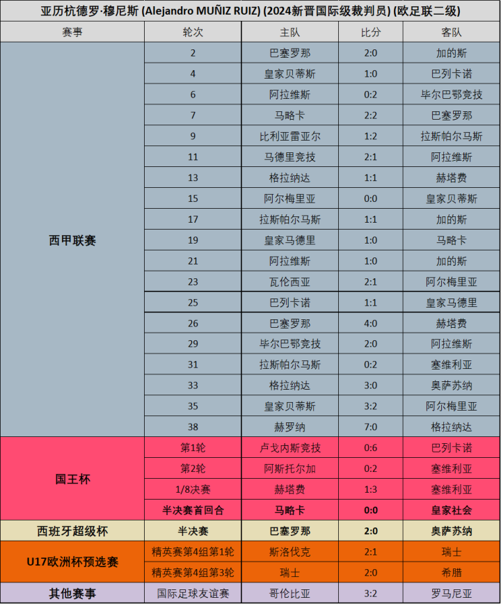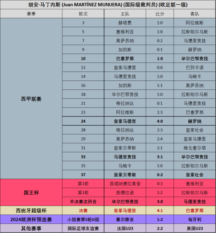 (图)23/24赛季穆努埃拉各项赛事执法场次明细