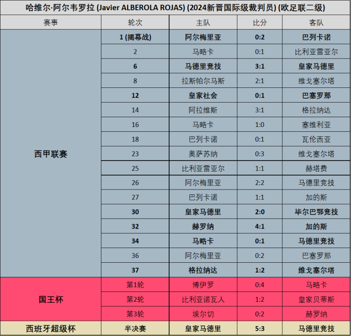 (图)23/24赛季阿尔韦罗拉各项赛事执法场次明细