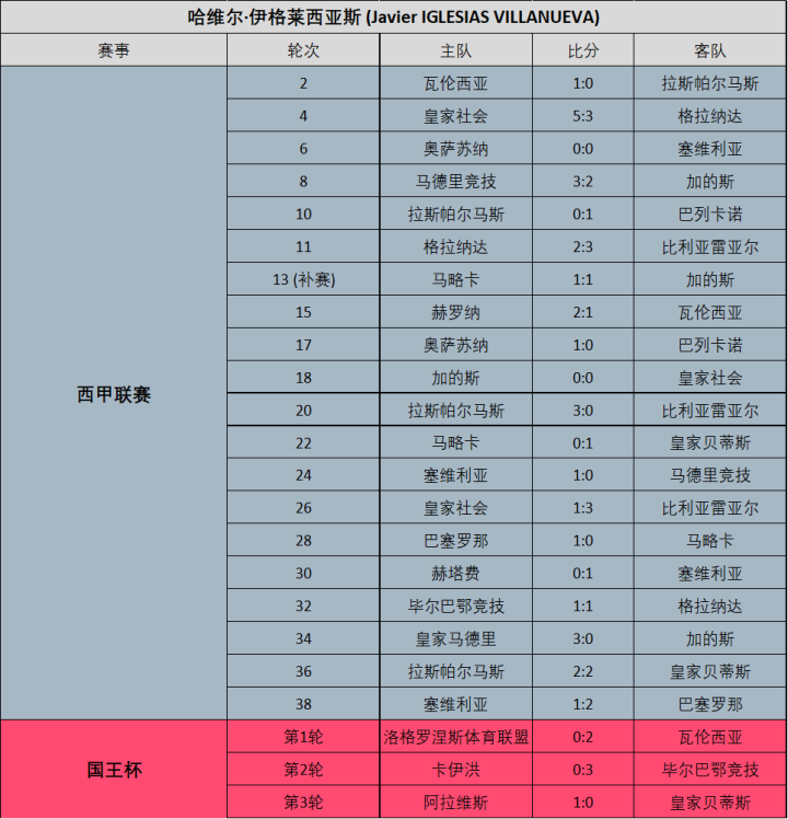 附:23/24赛季西甲联赛非国际级裁判员执法场次明细