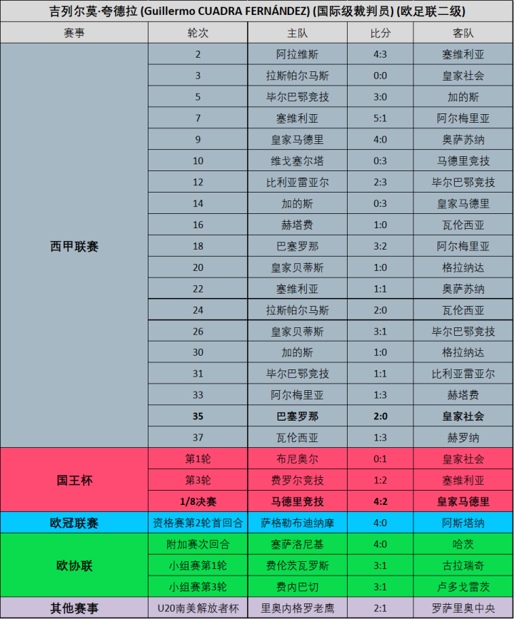 (图)23/24赛季夸德拉各项赛事执法场次明细