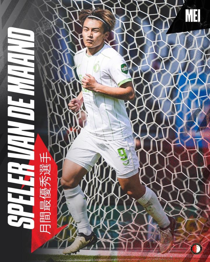 荷甲费耶诺德官方消息,日本前锋上田绮世当选球队5月最佳球员。