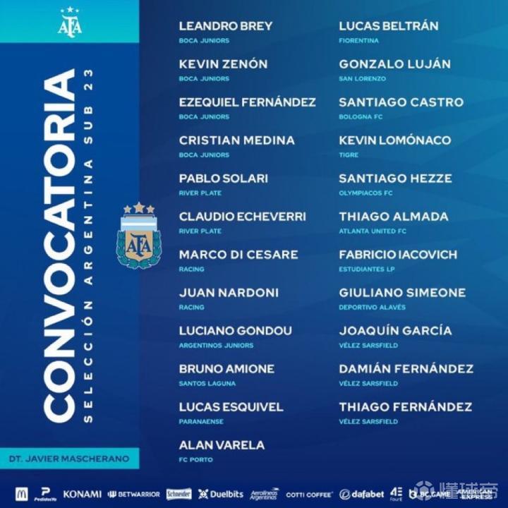 阿根廷国奥队将参加今年夏天的巴黎奥运会,日前已经公布了大名单,备受关注的恩佐-费尔南德斯和加纳乔都不在初选大名单上。