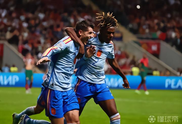 (图)后卫的身体素质一般,中场缺少对抗能力很强的球员,西班牙或许是列强中最不适合进行低位防守的球队,只有利用控球和压迫让危险远离禁区。莫拉塔&尼科-威廉斯在卡塔尔之旅中郁郁寡欢,如今要肩负重任。