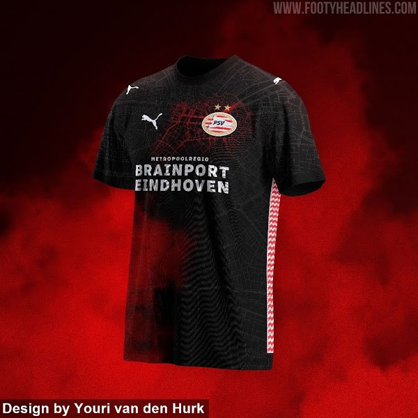 由尤里-范登赫克设计的球衣概念灵感来自埃因霍温城市地图,体现了这座城市的精神。球衣以黑色为主,红色光芒象征着比赛日的活力。