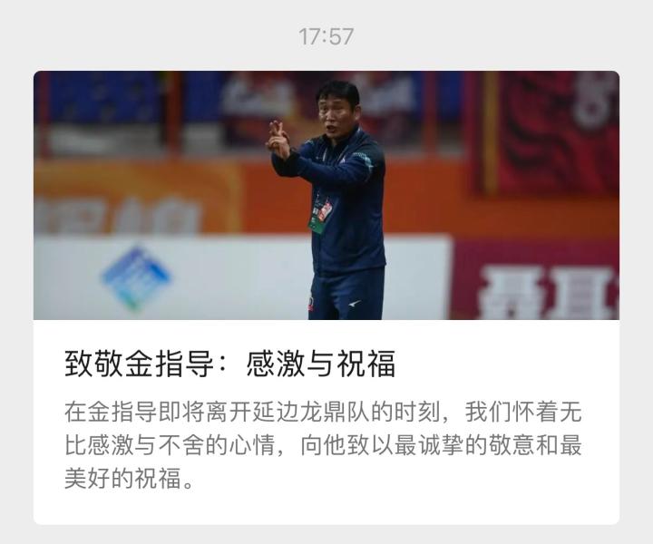 金指导,感谢您为我们付出的一切,感谢您用心血和汗水浇灌了延边足球的希望之花。无论您身在何处,我们都会永远支持您,祝福您。愿您前程似锦,身体健康,愿您的每一个梦想都能实现。