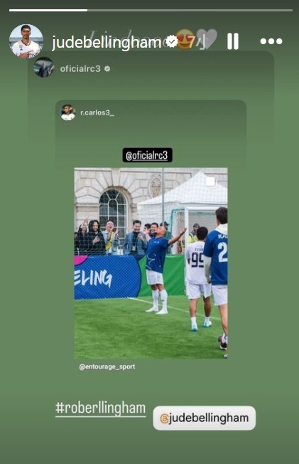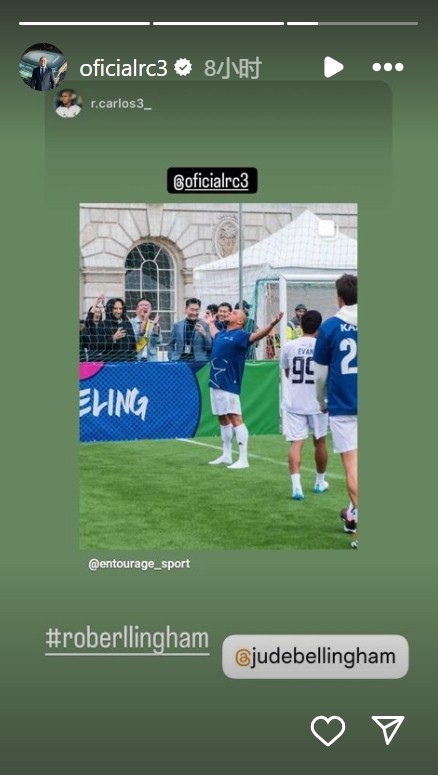 来自前辈的认可,罗伯托-卡洛斯活动中模仿贝林厄姆庆祝动作尼古拉约基奇 @懂球帝2024-06-05 10:50近日,前皇家马德里球星罗伯托-卡洛斯在参加一项活动的过程中,做出了贝林厄姆的标志性进球动作。罗伯托-卡洛斯也将自己模仿贝林厄姆庆祝动作的照片发至个人社交媒体上,并@ 了贝林厄姆,后者之后也对这条动态进行了转发。卡洛斯在1996-2007年间效力于皇马,为球队出场527次,打入70粒进球并贡献102次助攻。展开更多