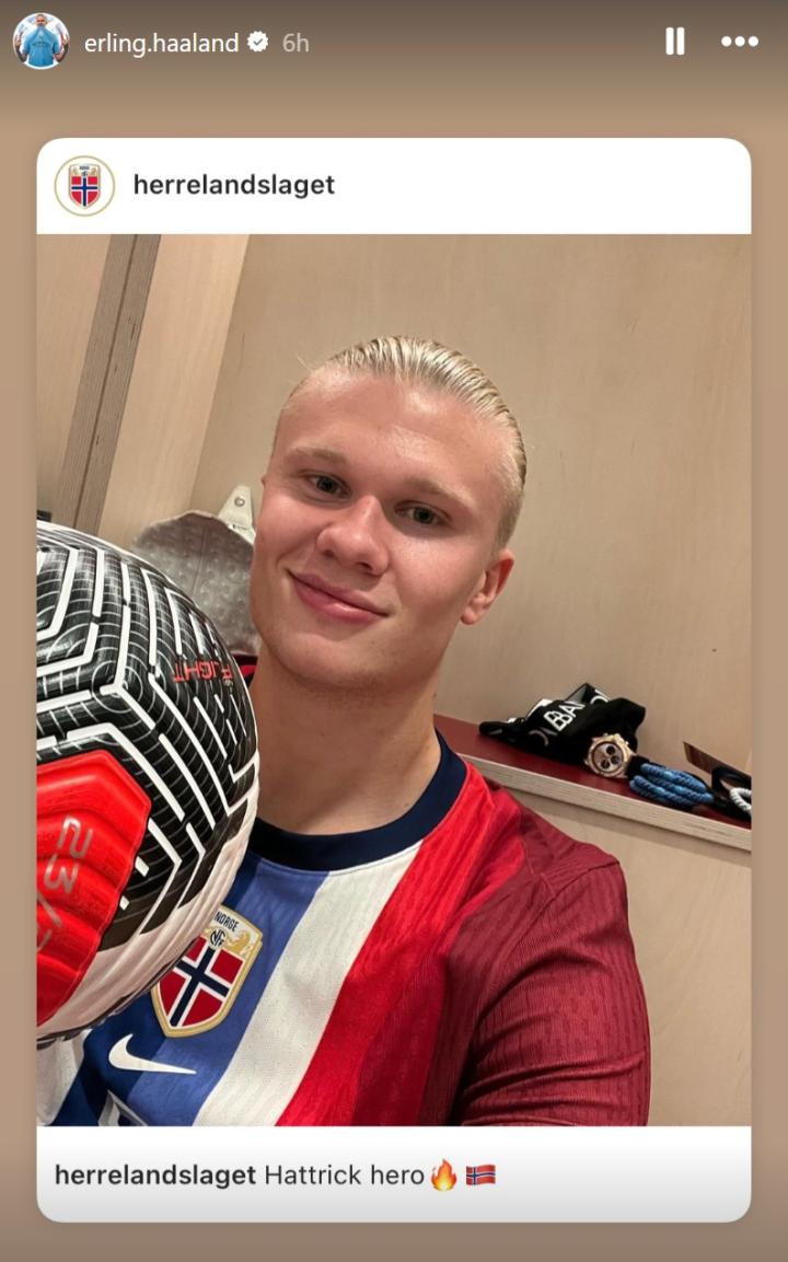 帽子戏法英雄,哈兰德为挪威戴帽后晒和比赛用球的合影