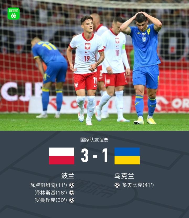 北京时间6月8日国家队友谊赛,波兰对阵乌克兰。此役,米利克开场伤退,瓦卢凯维奇、泽林斯基与罗曼丘克先后建功助波兰三球领先,多夫比克为乌克兰扳回一城。最终,波兰3-1击败乌克兰。