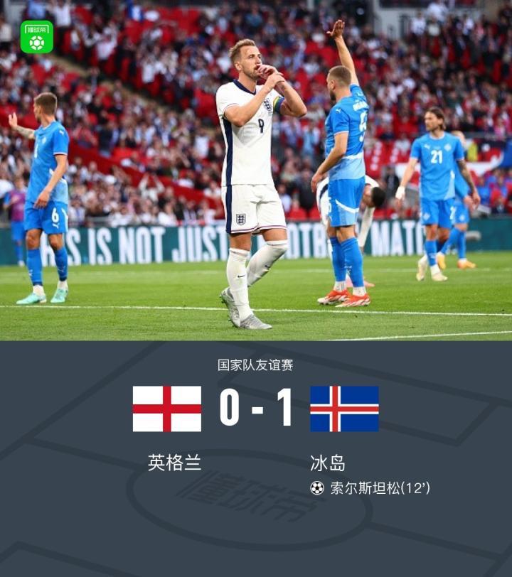 北京时间6月8日02:45,英格兰坐镇温布利大球场与冰岛进行一场热身赛。上半场,索尔斯坦松反击贴地斩破门,凯恩错失门前良机。下半场,帕尔默与索尔斯坦松各失良机。最终,英格兰主场0-1不敌冰岛。