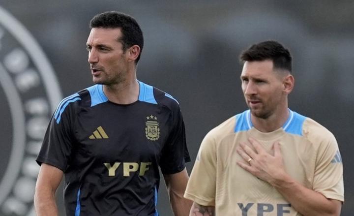 他还赞扬了梅西和其他球队领袖在领导方面的表现。斯卡洛尼说:“教练需要看到这一切,但我认为团队需要领袖:梅西、迪马利亚、奥塔门迪,他们是多年来一直在并且想要继续留在队中的球员。他们的行为表现出,即使可能因为某些原因被替换下场、未被征召进某场比赛或者因伤缺席一场比赛,他们仍然想要留在队中。因此,这种信息肯定会在团队中传达。除了教练和技术团队传递的信息外,你的队友也是至关重要的。看到一个在国家队已经有超过100场比赛经验的人,他仍然想要继续留在队中,愿意坐上数小时的飞机来参加比赛,我认为这会传递出一种信息。我不确定其他国家队是否也会出现这种情况。这很困难。在欧洲的比赛结束后,你必须坐上数小时的飞机参加两天后比赛,然后再回去。如此多年如一日,这种精神感染着队友,我相信他们感同身受。”