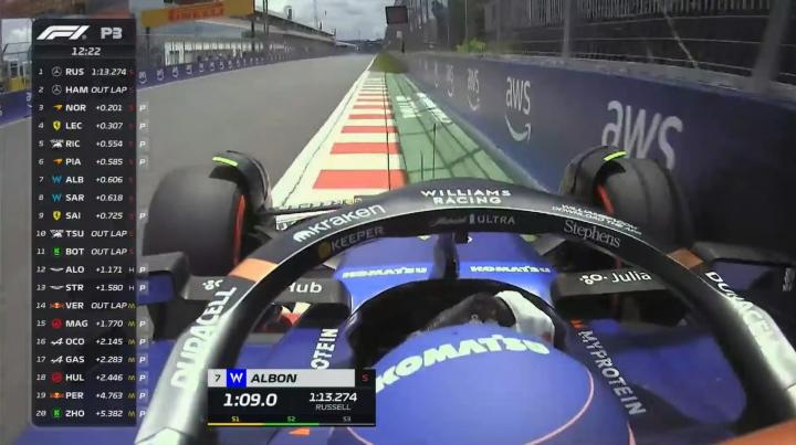 “冠军墙”首撞来了!阿尔本路肩吃的稍多,赛车蹭到了“冠军墙”!
