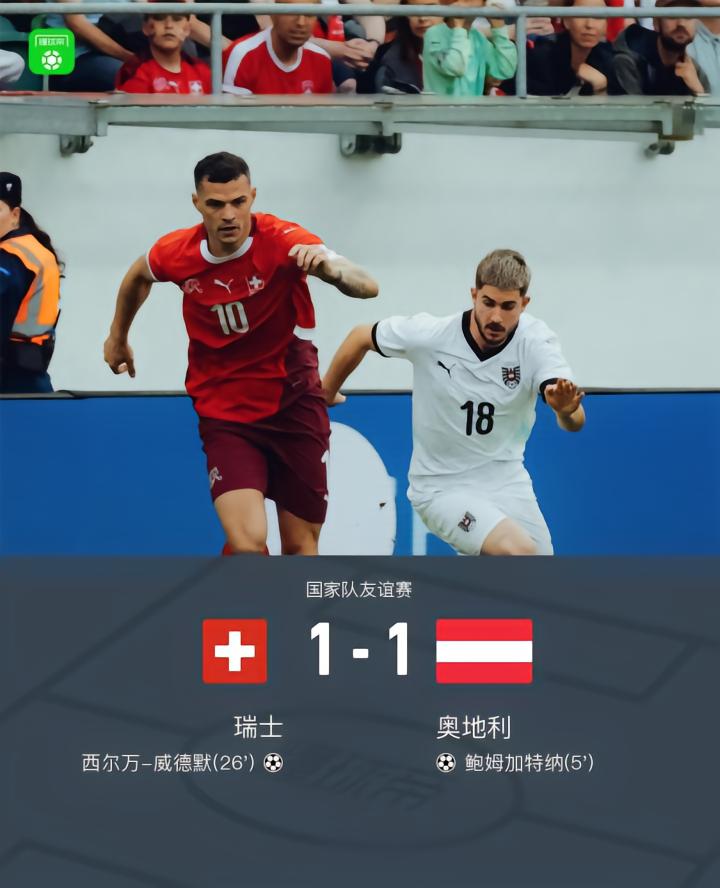 瑞士1-1奥地利,鲍姆加特纳千里走单骑,威德默破门