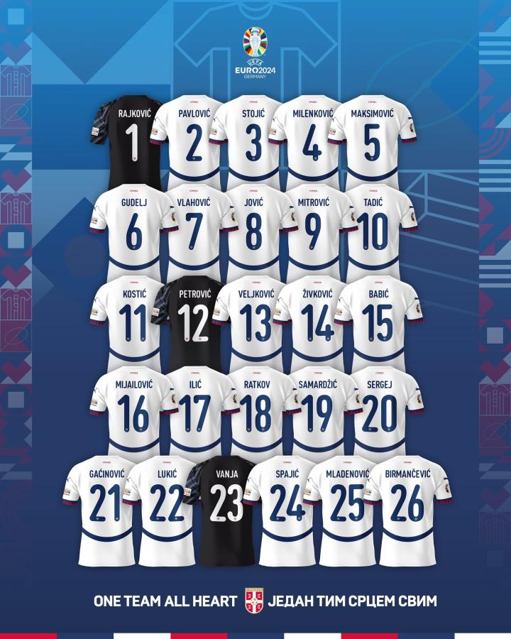 北京时间今天,塞尔维亚国家队在官方社媒发布了2024欧洲杯的球员号码名单,弗拉霍维奇7号,米特罗维奇9号。
