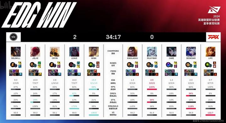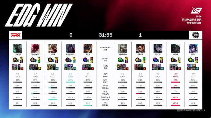 2024LPL夏季赛:EDG 2-0 FPX,FPX战力直线下降EDG拿下首胜