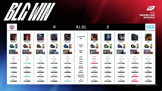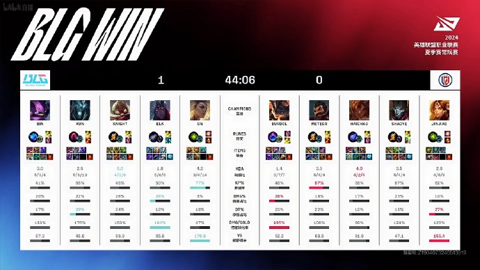 电竞赛事战报英雄联盟2024LPL夏季赛BLG vs LGD,BLG 2-0 LGD,Burdol关键失误BLG成功翻盘。