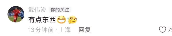 昨晚战胜韩国队的比赛里,17岁的刘诚宇完成梅开二度。刘诚宇写道:“再接再厉(冠军)!”在评论区内,上海申花队员戴伟浚留言夸赞:“有点东西。”