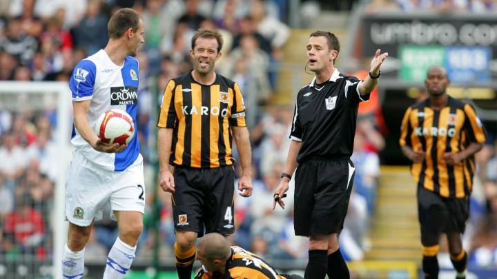 (图)2008年8月23日,25岁的阿特韦尔完成英超执法首秀(布莱克本流浪者1-1赫尔城)
