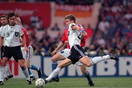 1996年6月30日,尽管东道主英格兰被德国队挡在决赛之外,但温布利球场仍然座无虚席,球迷们期待这对“老冤家”为大家奉献一场精彩对局。