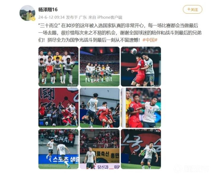 “‘三十而立’ 在30岁的这年被入选国家队真的非常开心,每一场比赛都会当作最后一场去踢,很珍惜每次来之不易的机会,谢谢全国球迷的陪伴和战斗到最后的兄弟们!拼尽全力为国争光战斗到最后一刻从不留遗憾!”中韩之战后第二天,回到国内的杨泽翔在社交媒体上写下这样的感言。不管未来如何,至少在这个赛季,“翔战士”已经用训练和比赛中的表现,向斯卢茨基和伊万科维奇两位名帅,以及全国球迷证明了自己的实力,也告诉所有怀揣梦想的球员:不断努力,就是通往成功的阶梯。