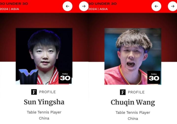 2024年福布斯亚洲文体领域精英榜出炉,孙颖莎、王楚钦入选
