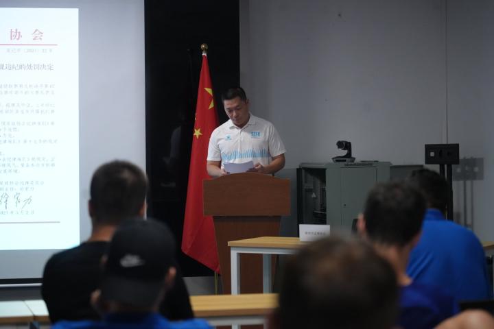 随后深圳市足球协会竞赛部部长唐国新带领全体人员学习2024赛季中超联赛违规违纪情况,并观看联赛相关违规违纪视频,详细解读各个违规违纪处罚决定。