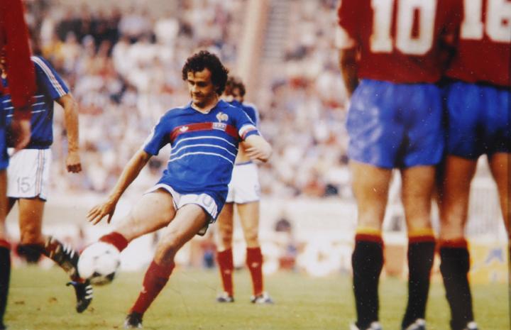 打入淘汰赛后,法国队迎战葡萄牙,双方打出了一场史诗级别的战役,高卢雄鸡直到常规时间最后时刻才追平比分,而普拉蒂尼则在加时赛一剑封喉,逆转取胜;决赛中又是普拉蒂尼任意球首开纪录,为法国队打开了胜利之门。