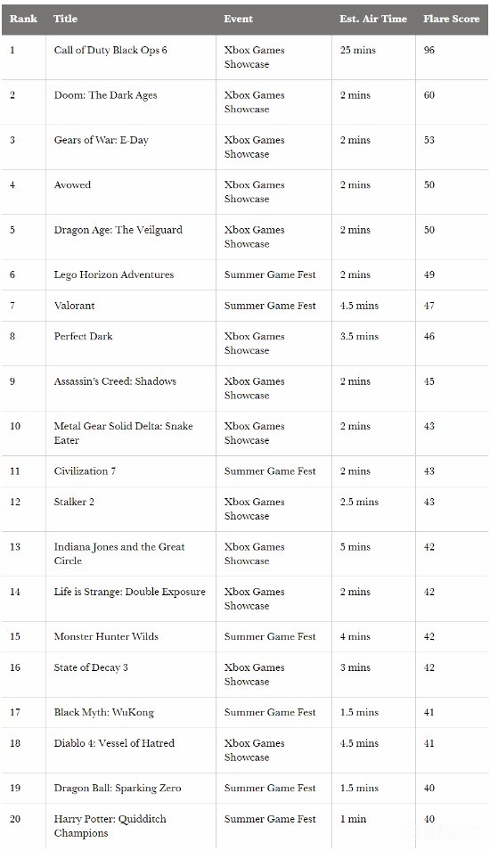 夏季发布会游戏热度Top20:使命召唤21登顶,黑神话上榜