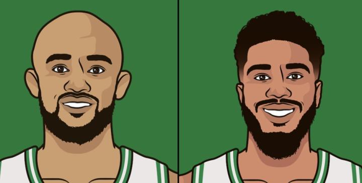 在已经结束的三场总决赛中,杰森-塔图姆三场比赛场均21.7分8.7篮板7.3助攻。德里克-怀特三场比赛场均16.3分4篮板3.6助攻1.3抢断1.3盖帽。