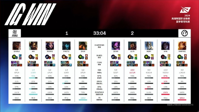 2024LPL夏季赛:IG 2-1 NIP,IG让一追二终结三连败