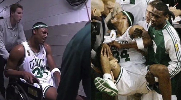 这一年的总决赛堪称史上话题度最高的总决赛之一,两只联盟世仇豪门的对决,绿军三巨头对上夺冠心切的科比。总决赛第一场,在第三节比赛还剩不到7分钟时,皮尔斯与队友帕金斯相撞,痛苦地倒在地上,他捂着右膝被抬出了球场,但不久皮尔斯又戏剧性地恢复。多年之后,皮尔斯称他当时感觉快要拉在裤子上了,所以才假装痛苦找了个机会上厕所。