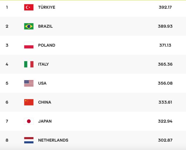 巴黎奥运会女排比赛的参赛席位为12个,其中8个已经确定(东道主法国、土耳其、美国、巴西、塞尔维亚、中国、波兰、多米尼加)。日本队此前一直在争夺剩下的4个席位,这些席位将根据下周一国家联赛预赛结束后的世界排名确定。