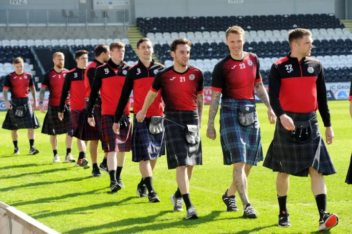 (图)苏超圣米伦的球员身穿苏格兰裙