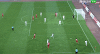 第74分钟,杨健门前头槌,皮球偏出立柱