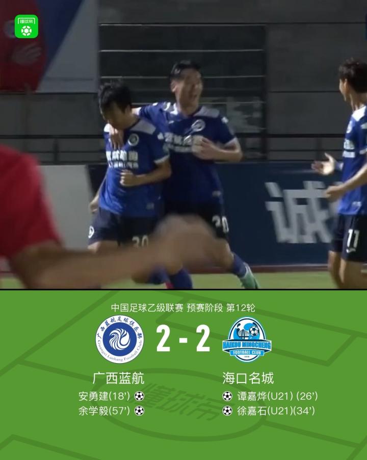 广西蓝航2-2海口名城,安勇建打破僵局,余学毅扳平
