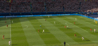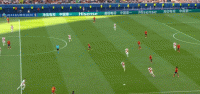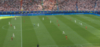 本场比赛克罗地亚采取的防守战略非常激进,在自己半场会投入大量兵力压缩对手进攻,简单来说就是球在哪,哪里就全是我们克罗地亚人,格子军团的防守站位完全跟着对手进攻移动,比如这个球。