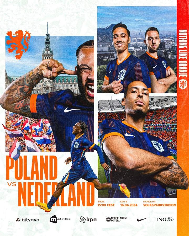 荷兰队晒首战预热海报:范戴克、德佩、弗林蓬等人出镜JayStones @懂球帝2024-06-16 13:51北京时间今晚21点,荷兰队将迎来欧洲杯小组赛首轮对阵波兰的比赛,赛前,荷兰队官方在社交媒体上发布了本场比赛的预热海报。海报中,德佩、赖因德斯、德弗赖、弗林蓬、范戴克出镜,本场比赛将在汉堡的禾克斯公园球场打响。两队最近的一次交手是在2022年的欧国联,首回合双方战成2-2,次回合荷兰队客场2-0击败波兰。展开更多
