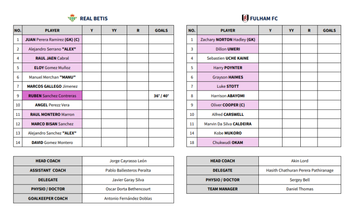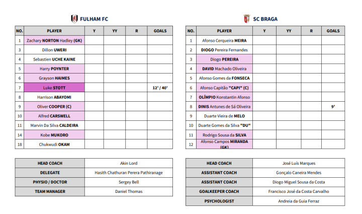 在葡萄牙体育和巴塞罗那的1/4决赛中,小狮子们也顺利晋级了半决赛,卡彭贾-达席尔瓦(Capendja Silva)在比赛中攻入两球。在皇家贝蒂斯和富勒姆的比赛中,鲁本(Rúben)的两粒制胜进球帮助西班牙队晋级半决赛。