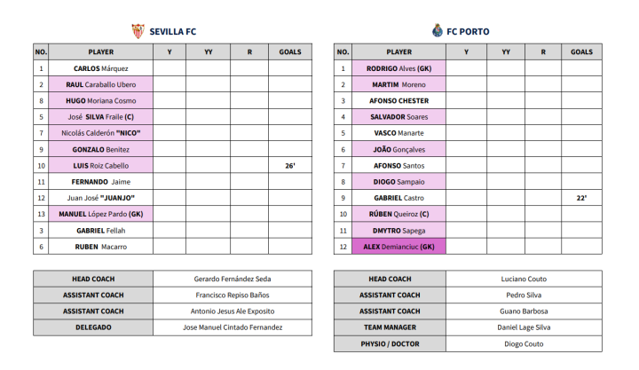 塞维利亚1-1波尔图(点球大战1-4)