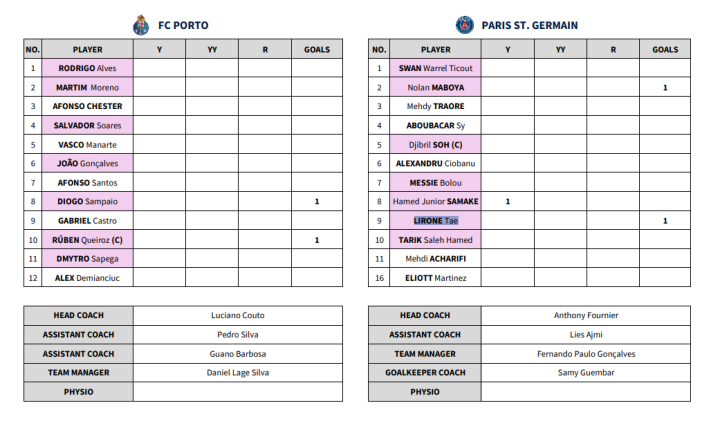 在揭幕战中,波尔图和巴黎圣日耳曼两支球队以2-2战平。大巴黎由Lirone Tae首开纪录,他打进了本次比赛的第一个进球,但“小龙人”顽强将比分扳平,最终2-2。