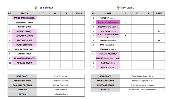 本菲卡0-2塞维利亚(B 组)